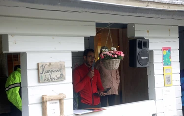 Kanjonin kahvila, kahvi ja pulla: 1. Jouni Kumpulainen 2. Kalle Tissari 3. Anne Piispanen 4. Tarja Spak 5. Heikki Rönkkö