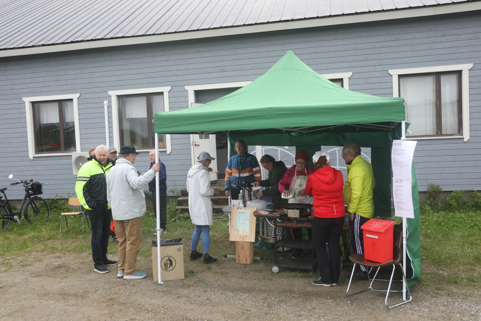 Seurantaloilla olivat talkoolaiset järjestäneet herkkutarjoiluja pikkurahalla. Samalla oli mukava päästä vaihtamaan kuulumiset tuttujen kanssa. Heikin haitarinsoitto loi tunnelmaa.